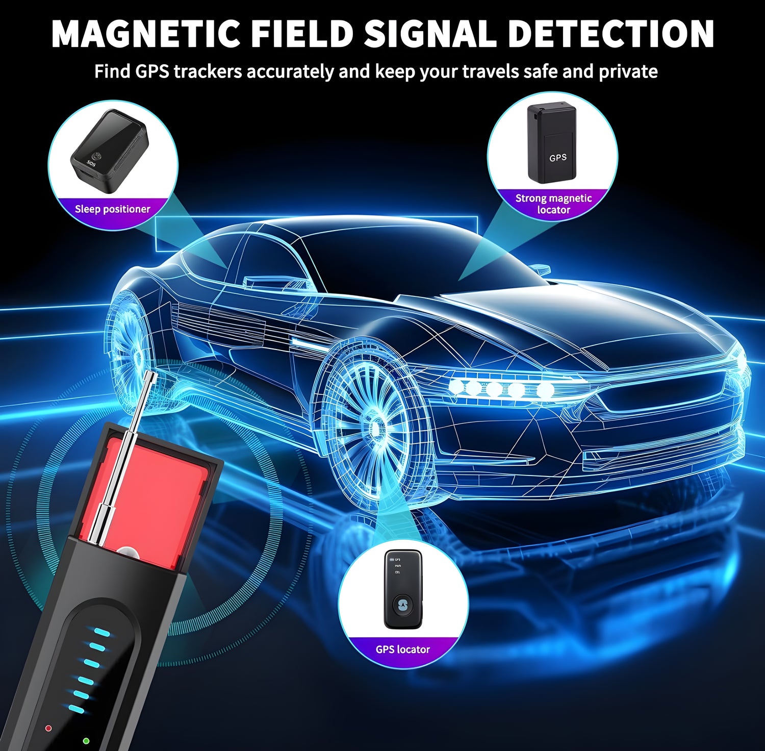 "Easily detect hidden GPS trackers with precision. Our device identifies magnetic field signals from common GPS locators to help you protect your car and maintain your privacy during every trip".
